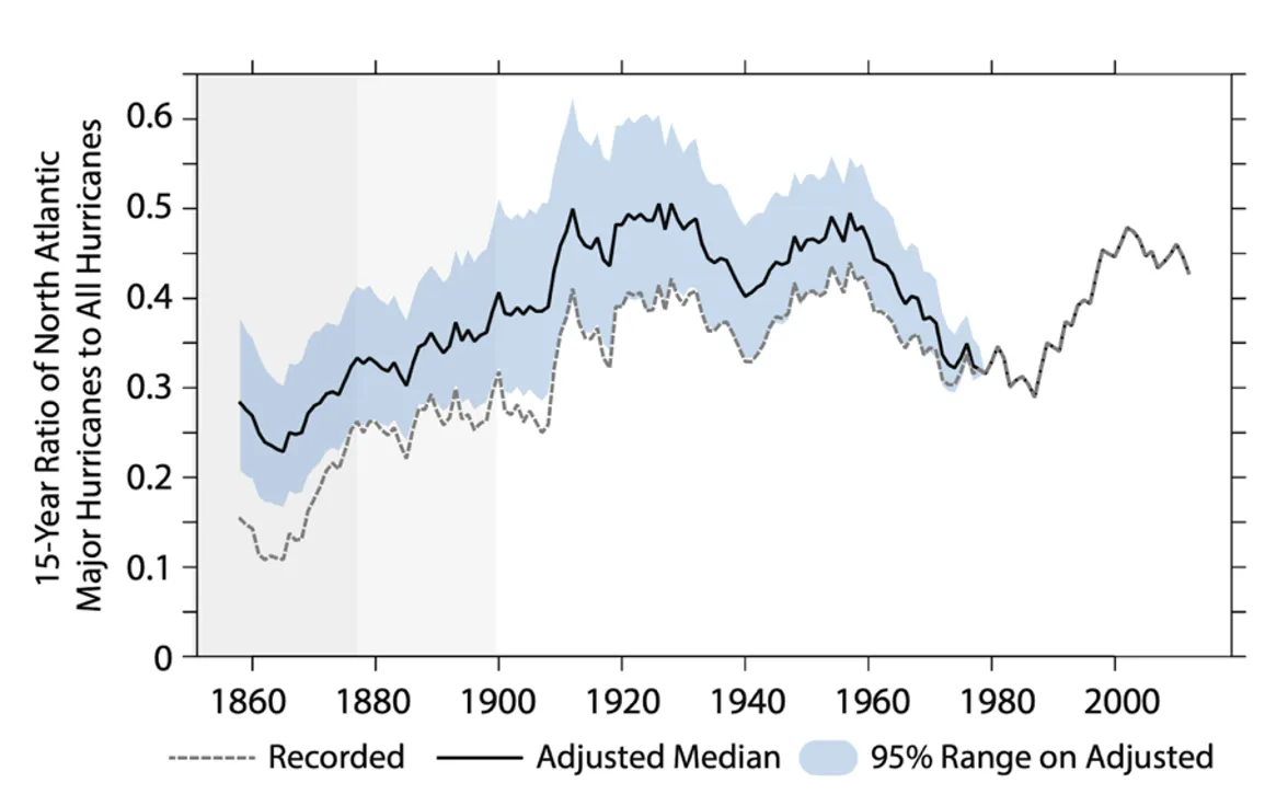 The point about the 1970s–80s hurricane lull being driven by increased aerosol pollution is exactly right. Sulfate aerosols from mid-20th century industrial activity reflected sunlight, cooled the North Atlantic, and suppressed hurricane activity. As air-quality regulations in the US and Europe reduced those emissions in the 1980s–90s, the masking effect lifted and greenhouse-gas warming reasserted itself, driving sea surface temperatures (and hurricane activity) upward. This is well established in the literature (see Dunstone et al., Nature Geoscience, 2013; Murakami et al., Nature Geoscience, 2015).