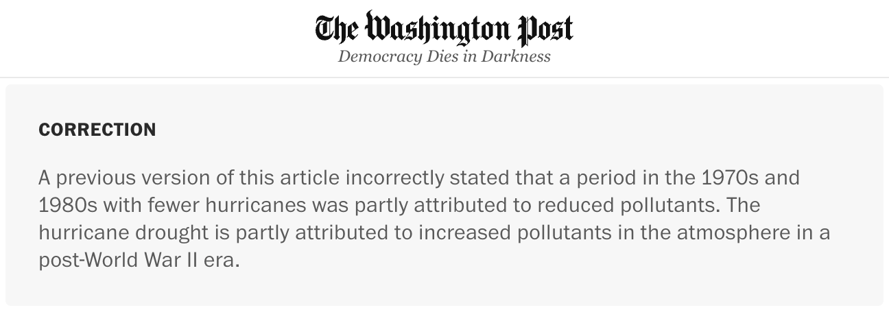 The Washington Post had it exactly backwards about air pollution and hurricanes
